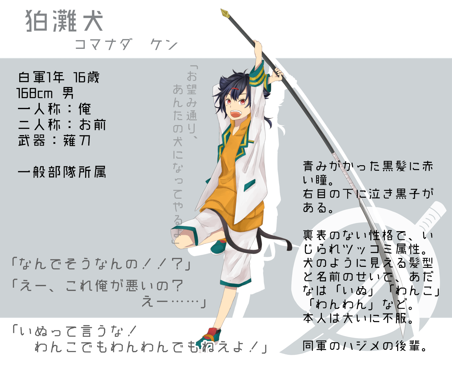 白軍に所属する1年生。青みがかった黒髪に、赤い瞳を持つ。使用武器は薙刀。