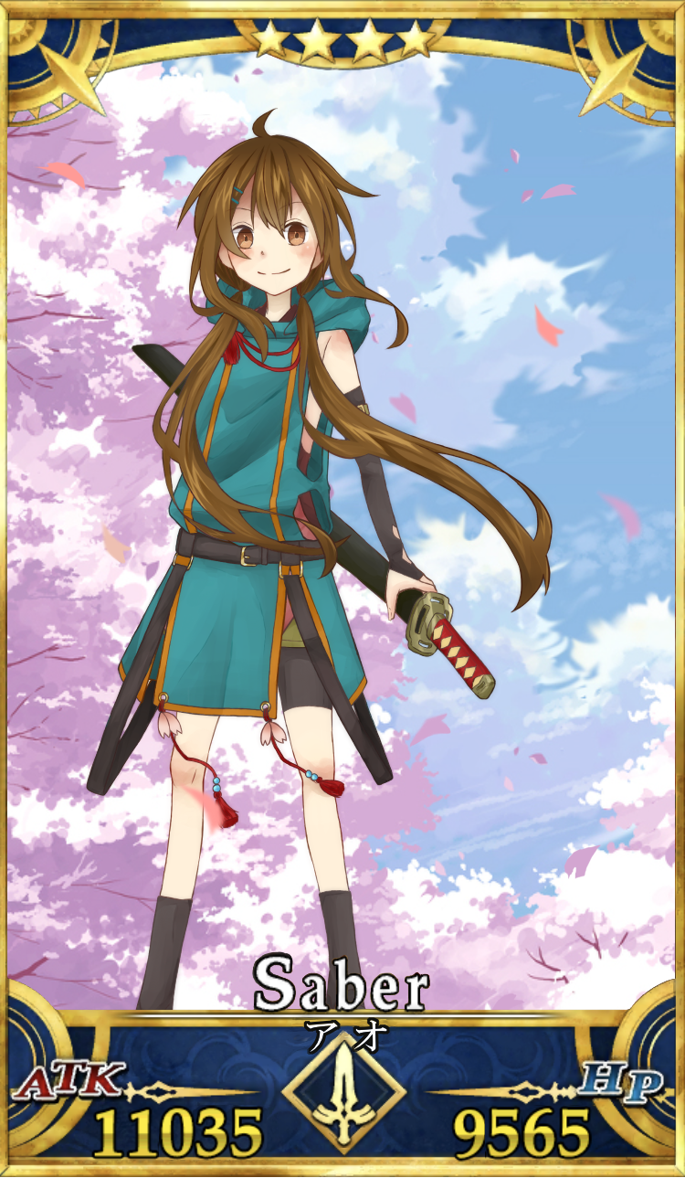 なぜか新選組新入隊員として、ちびノブたちを率いる。前回とは違い、ぐだぐだ粒子に侵されていない、巻き込まれはぐれサーヴァント。おき太とノッブと共に現れたマスターに助けを求める。どうにかして。