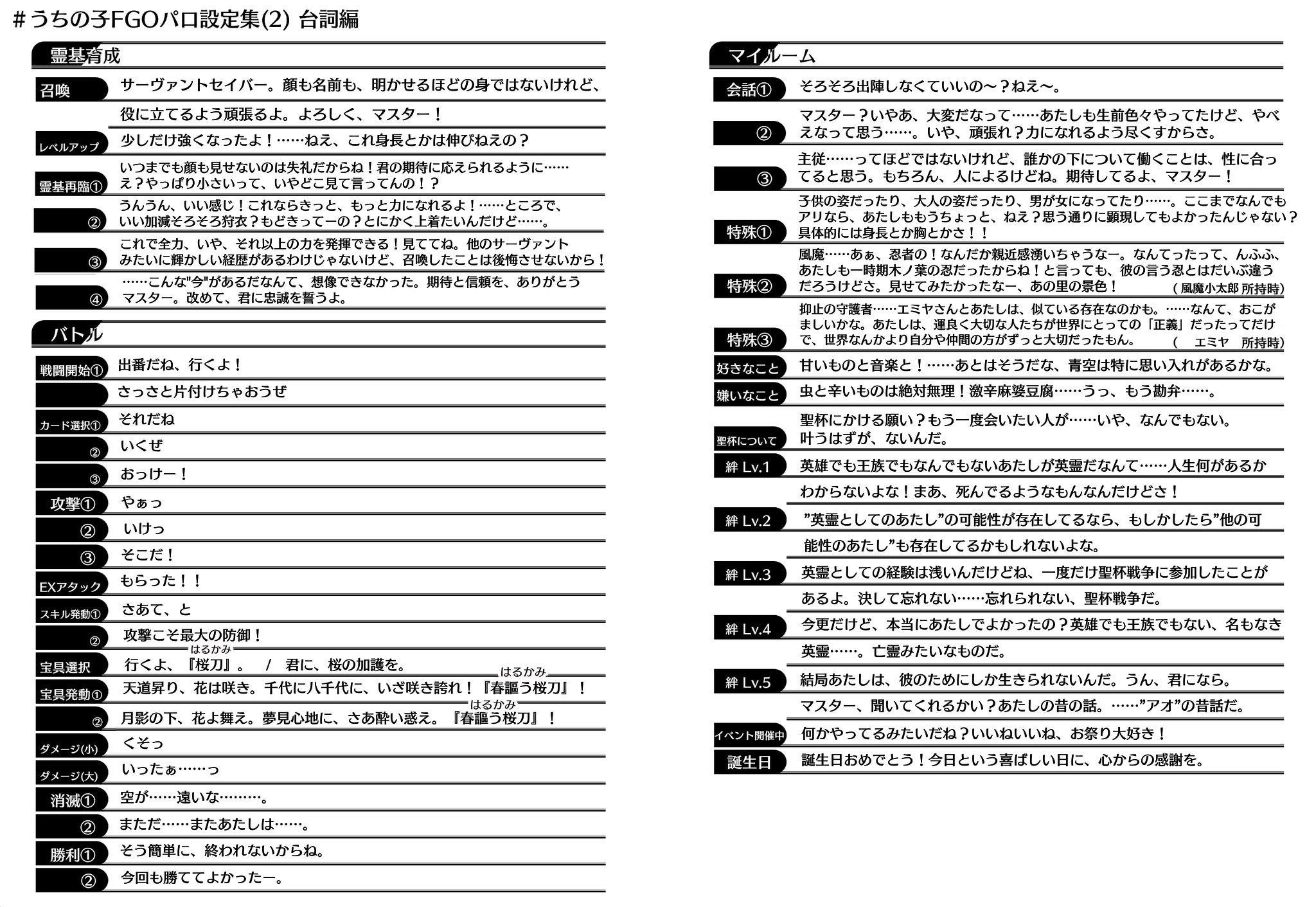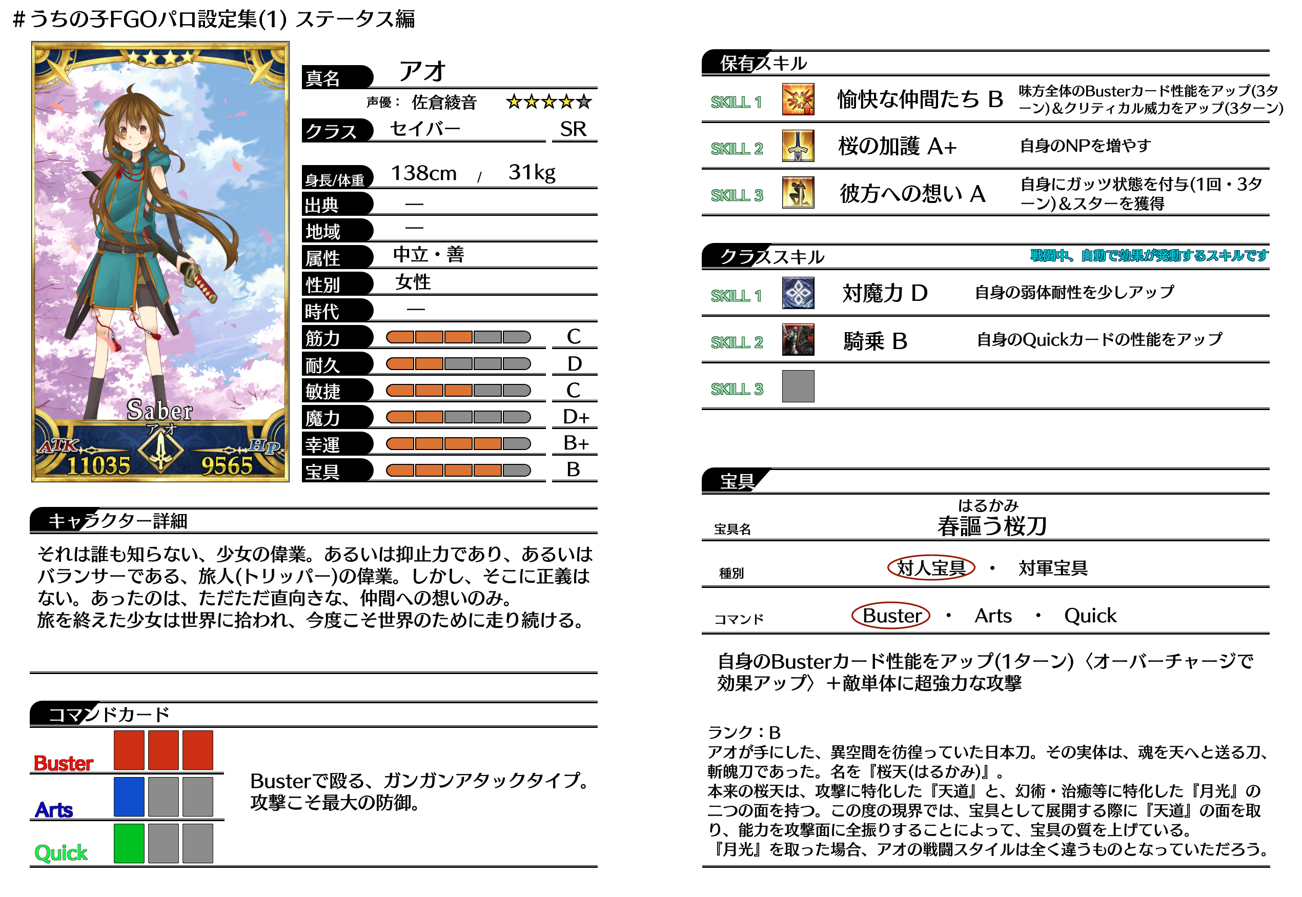 筋力C 耐久D 魔力D+ 敏捷C 幸運B+ 宝具Bコマンドカード