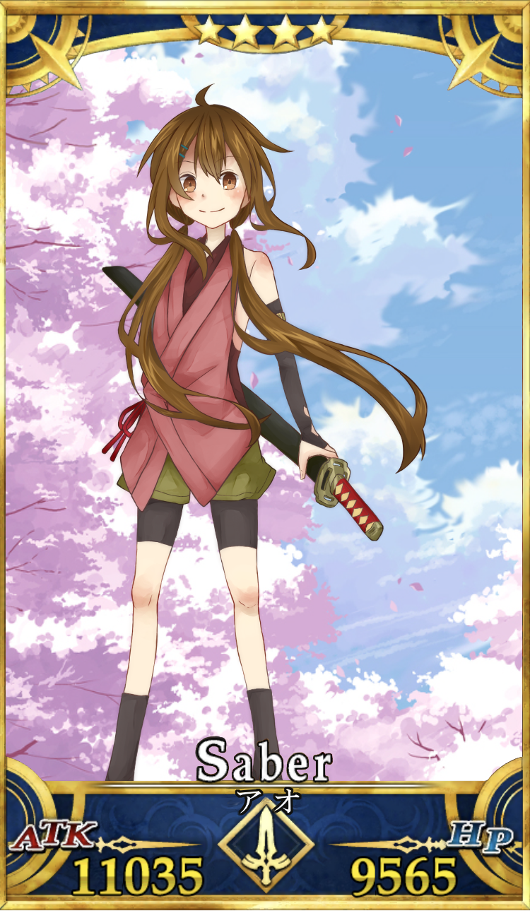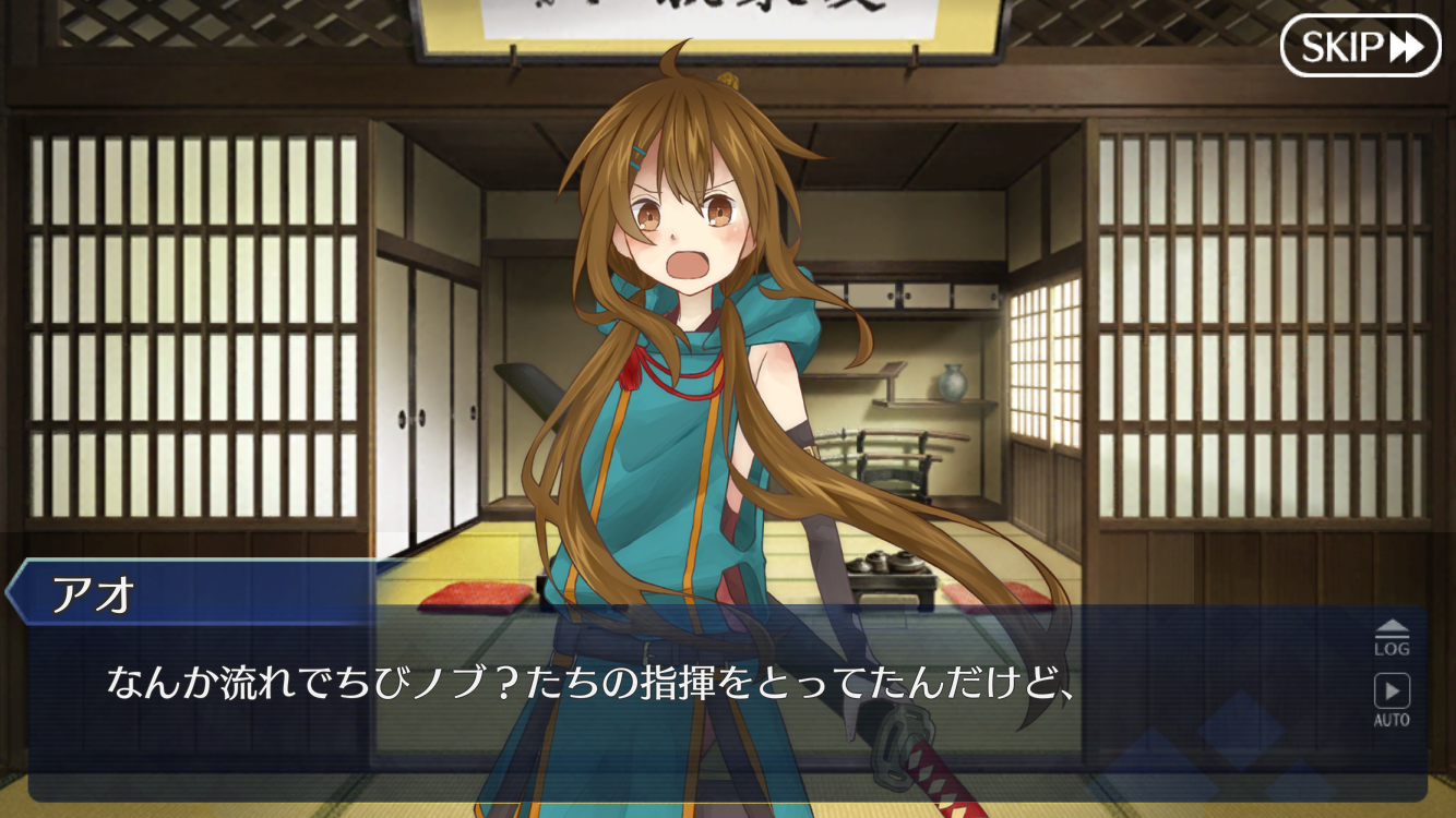 なぜか新選組新入隊員として、ちびノブたちを率いる。前回とは違い、ぐだぐだ粒子に侵されていない、巻き込まれはぐれサーヴァント。おき太とノッブと共に現れたマスターに助けを求める。どうにかして。